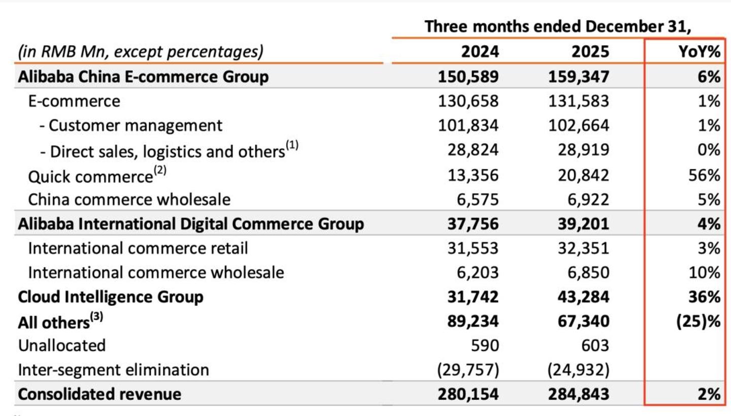 3月19日,阿里发布2025年第四季度业绩。