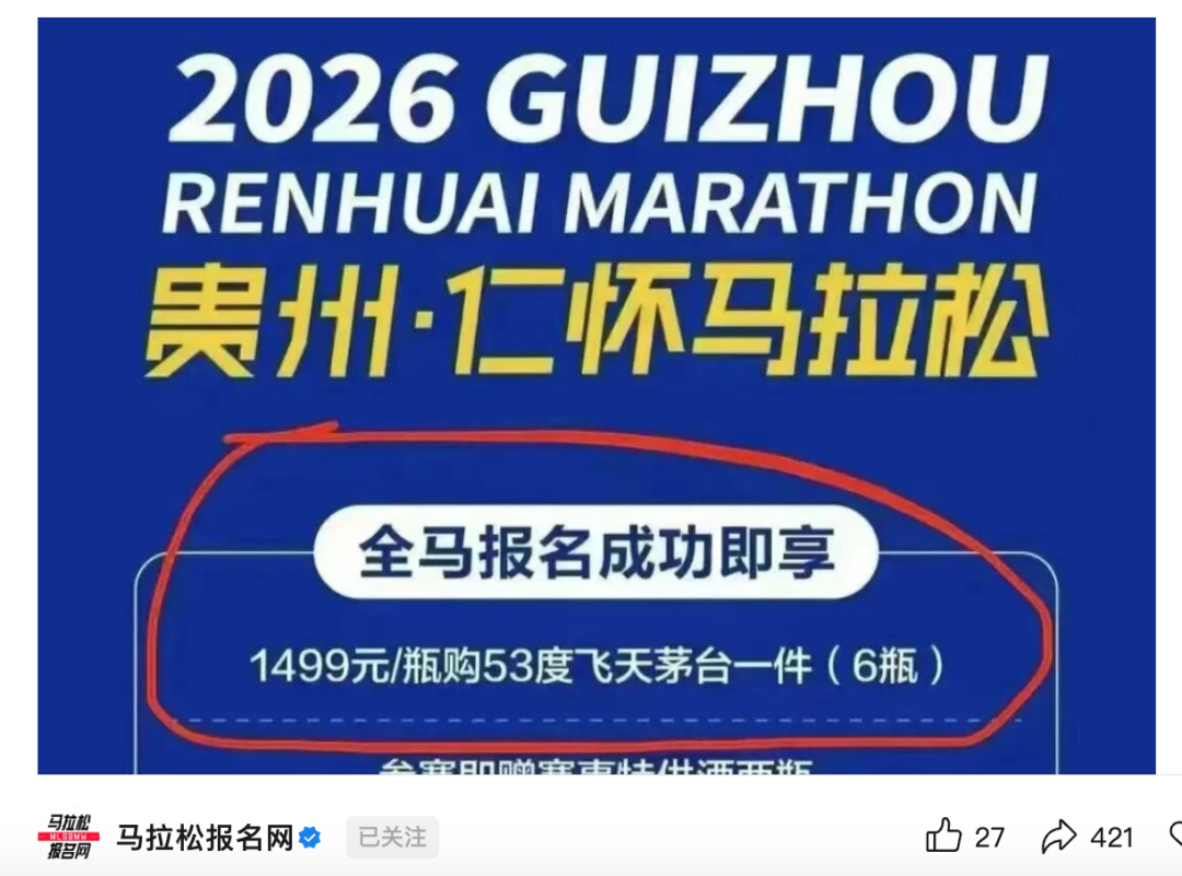报名成功,可1499元/瓶购飞天茅台!2026贵州仁怀马拉松,明天开跑