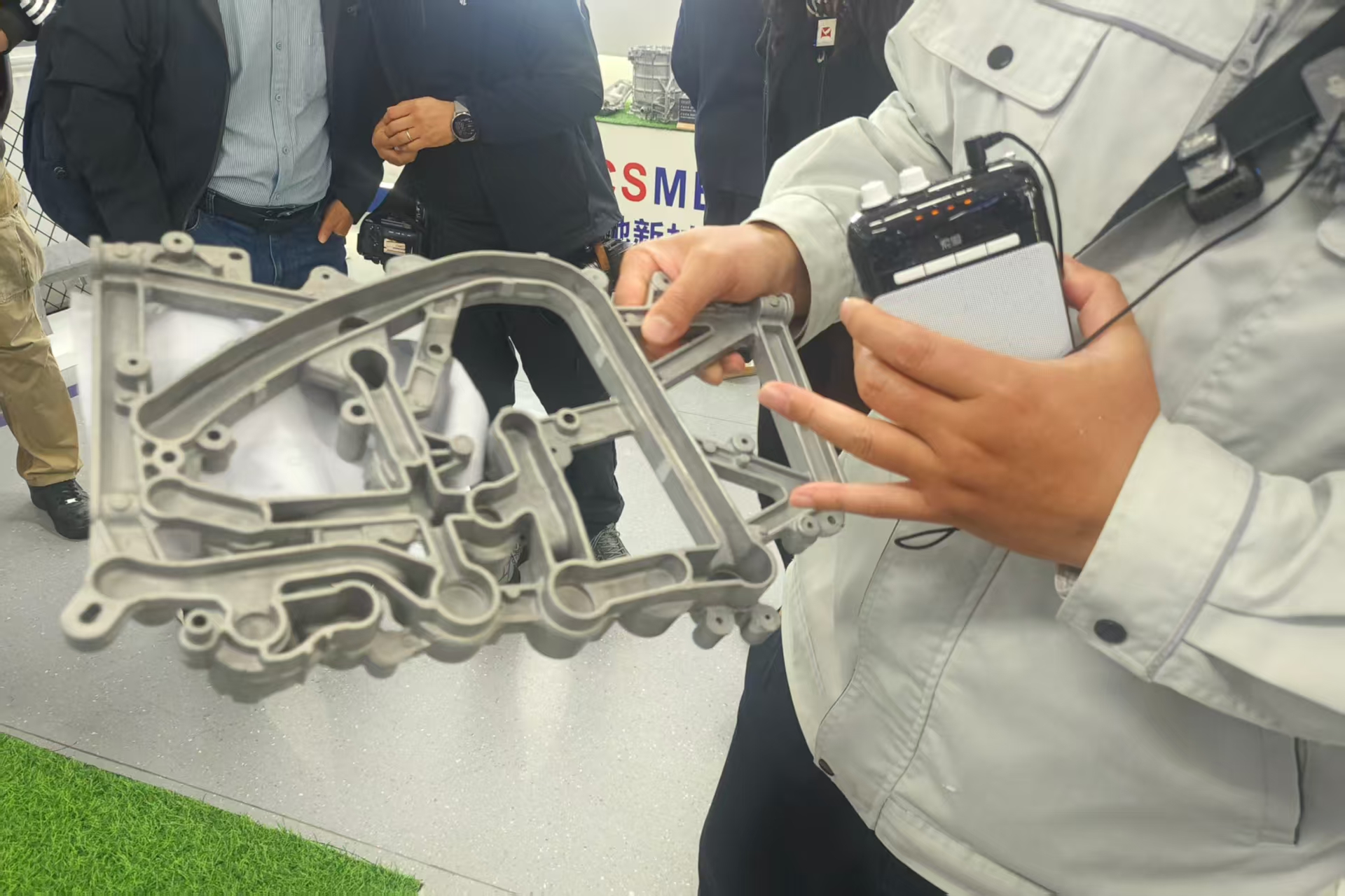 图为“玄武合金”材料下的一体化压铸部件邹臻杰/摄