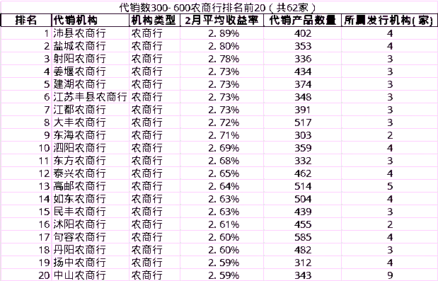2)2 月前 10 名中,江苏系农商行(镇江、张家港、高淳、如皋、靖江、南通、江阴、扬州)占 8 席,显示江苏区域在该代销规模下的代销能力显著增强。