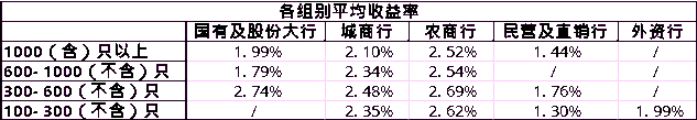 1)浦发银行从第15名跃升至第6名,上升幅度最大。建设银行从第11名升至第3名,上升8位。兴业银行、交通银行均上升5位,收益率降幅也相对较小,跻身前列。
