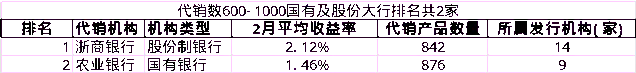 2月份,这一主流战场区间的竞争依然非常激烈。从1月32家到2月的42家,足足增加了10家银行进入此区间,可见理财代销业务在各家银行的增长趋势都非常强。