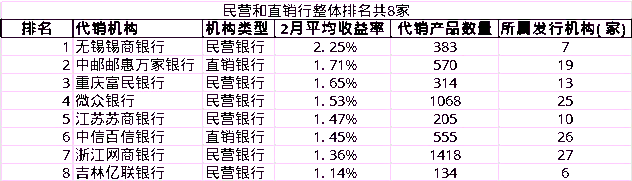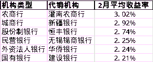 各类型银行的2026年2月份代销收益率冠军分别是: