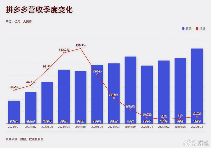 2025年四个季度,拼多多有两个季度的营收,超越了阿里中国电商集团的电商板块。