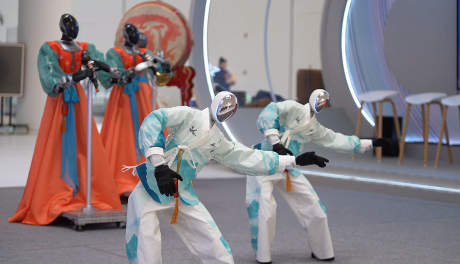 2026中关村论坛年会上,机器人乐队与舞蹈机器人一起进行歌舞表演。主办方供图