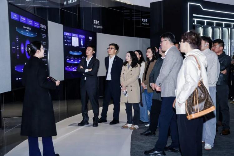 在展厅参观环节,同学们近距离了解了阿里云自主研发的“飞天”操作系统——这一大规模分布式计算操作系统,是中国云计算领域的里程碑式突破。2013年,“飞天”系统成功突破单集群5000台服务器的技术壁垒,使阿里云成为中国第一家拥有完整云计算能力的企业,标志着中国在核心算力领域实现了自主可控的重大突破。同学们驻足于展示墙前,认真听取讲解,并不时就技术细节与商业化应用与工作人员展开深入交流。