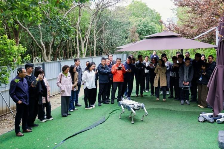 在杭州云深处科技股份有限公司,同学们近距离接触了全球四足机器人行业的领先技术。作为“杭州六小龙”之一,云深处科技自2017年成立以来,专注于腿足机器人(具身智能)的研发与行业应用。在企业展厅,同学们亲眼见证了“绝影”系列四足机器人灵活上下楼梯、自主导航的精彩演示,也了解了其人形机器人DR01、DR02在电力巡检、应急救援等复杂场景中的应用能力。