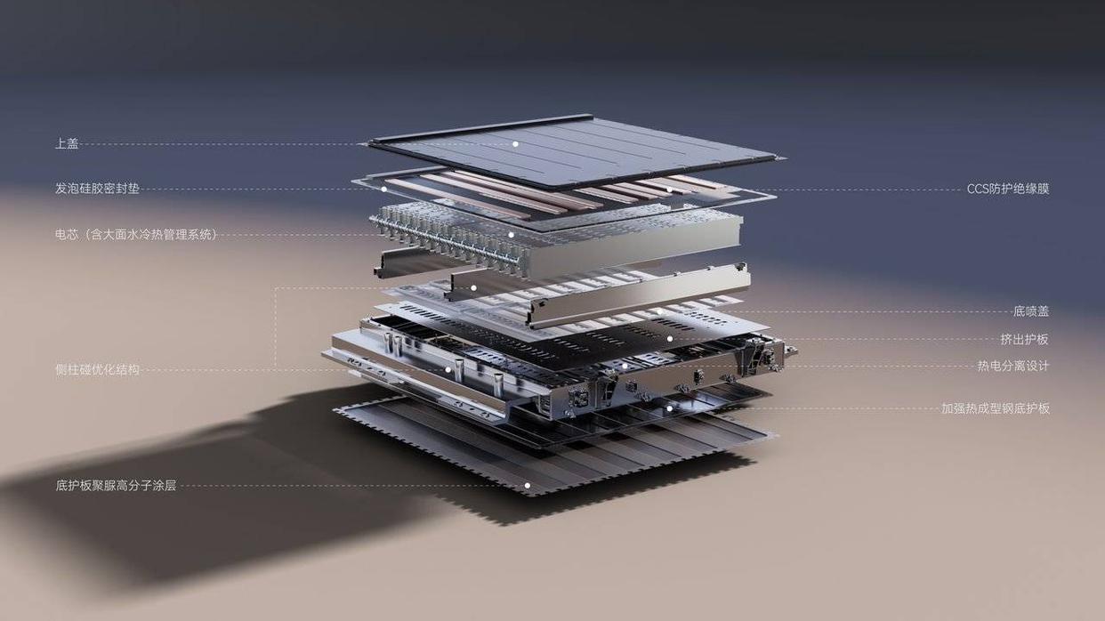动力电池部分,品牌与宁德时代联合开发全地形专用骁遥增混电池。快充性能方面,峰值充电速度可达 6 C,峰值充电功率为 350 kW。电池采用宁德时代「0 无热扩散」技术,实现高压与烟气主动隔离,并采用定向向下热导流设计。电池底部使用超强特种钢与 FD 高分子防爆耐磨涂层组合。根据官方数据,其撕裂强度为常规 PVC 的 10 倍,冲击强度达到国标的 7 倍,防盐雾周期可达 20 年。