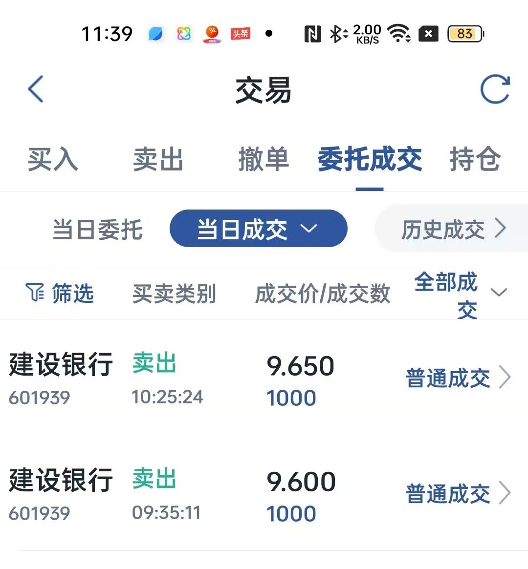 比如,今天上午,我就是用我自创的量化交易程序分别在9.60元和9.65元各卖出成交一千股,下午如果继续上涨就会继续卖出成交,也就是我采取的是越涨越卖的操作方案。