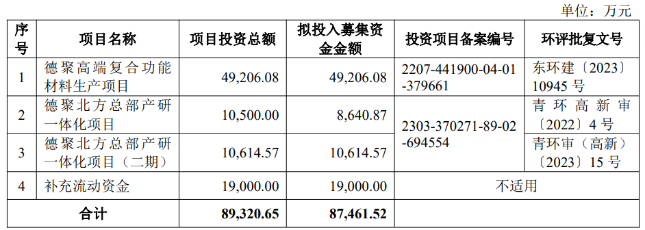上次IPO,德聚技术原拟在上交所科创板拟募集资金8.75亿元,主要用于高端复合功能材料生产项目建设、北方总部产研一体化项目落地及补充流动资金。然而到2024年,因自身发展战略考虑,公司撤回前次上市申请,并于2024 年6月24日收到上交所终止审核的决定。