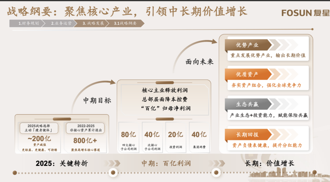 这实际上是复星的一次深思熟虑的取舍。“我们坚决退出那些盈利不佳、价值不达标的资产,把资源聚焦到高增长的核心赛道,推动公司向更轻盈、更健康、更可持续的方向发展。”郭广昌在3月31日的业绩说明会上表示。