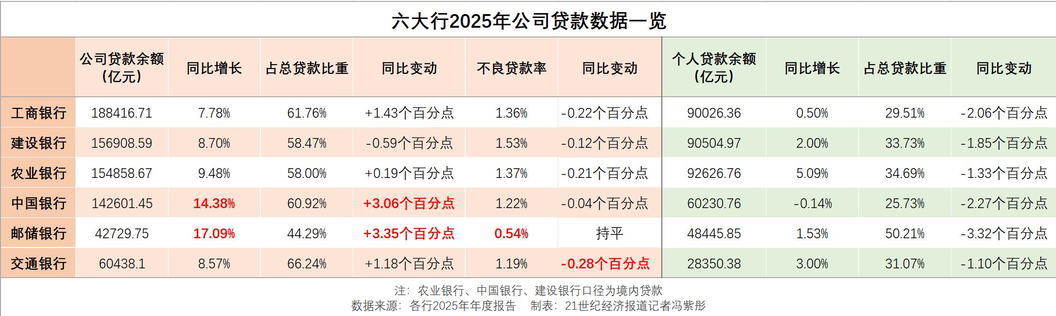 公司贷款的量与质,直接决定了银行对公业务的底盘。2025年,六大行在这一赛道上继续放量。