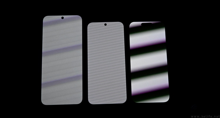 现场实拍的PWM调光对比,可以看到中间的OPPO Find X9s Pro的屏闪几乎不可见