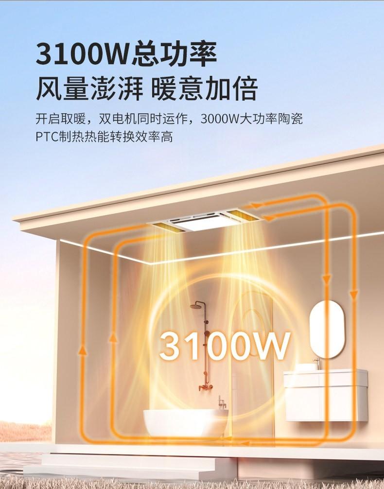在取暖性能方面,WiW采用陶瓷PTC中温发热芯,升温速度更快,进入洗浴状态的等待时间更短。相比传统灯暖产品,暖风覆盖更均衡,减少局部高温带来的不适。机体内置WOS智能恒温算法,并结合NTC多点感温阵列,可根据温差、空间大小与持续运行状态动态调节功率,让温度保持更平稳,减少忽热忽冷。蜂窝式双通道循环风道带来更均匀的立体送暖效果,改善头热脚冷问题。经典大格栅设计也进一步减轻直吹造成的刺热感,智能柔风恒温模式让洗浴环境更舒适。与此同时,低频闪LED照明在雾气环境下依然柔和清晰,换气系统还能同步完成换气、排气,帮助带走湿热空气与异味,兼顾防水、除菌与空间清爽度。