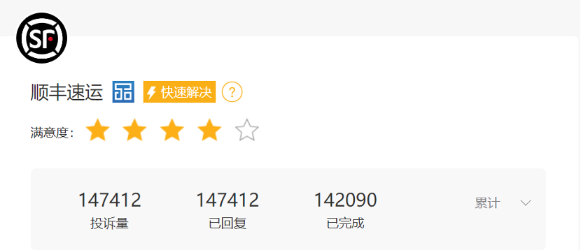 《BUG》栏目在黑猫投诉上看到,目前顺丰速运的累计投诉量超过14.7