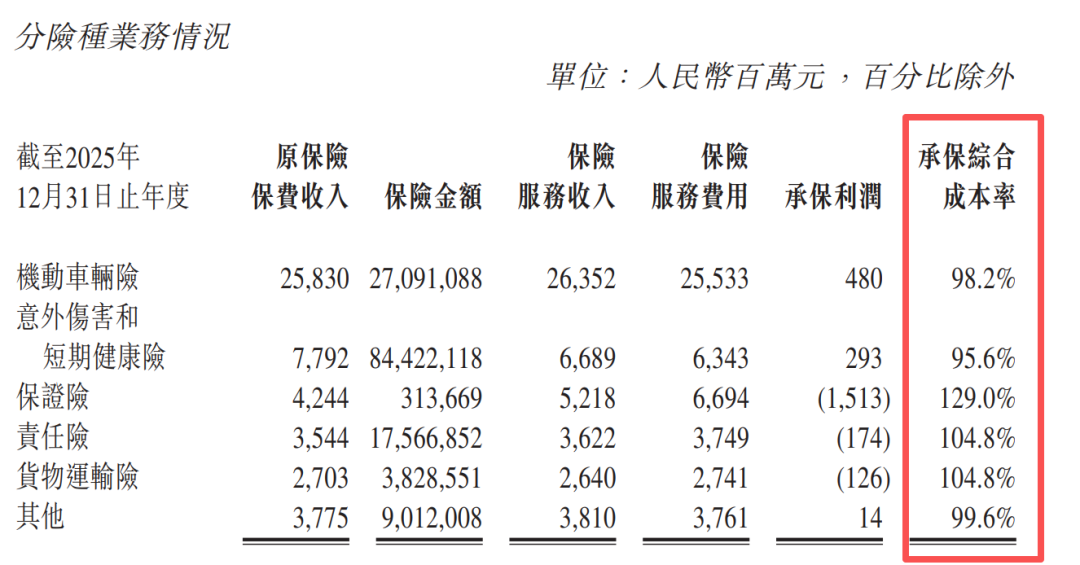阳光保险在年报中称,为适应市场环境变化和宏观政策调控要求,公司决定自2026年起停止新增融资类保证险业务。考虑到融资类保证险的业务特性,公司基于审慎性原则计提了准备金造成其2025年承保综合成本率129.0%。