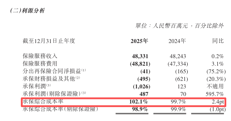 「子弹财经」注意到,2023年、2024年综合成本率98.7%、99.7%。2025年,阳光财险的承保综合成本率高达102.1%。