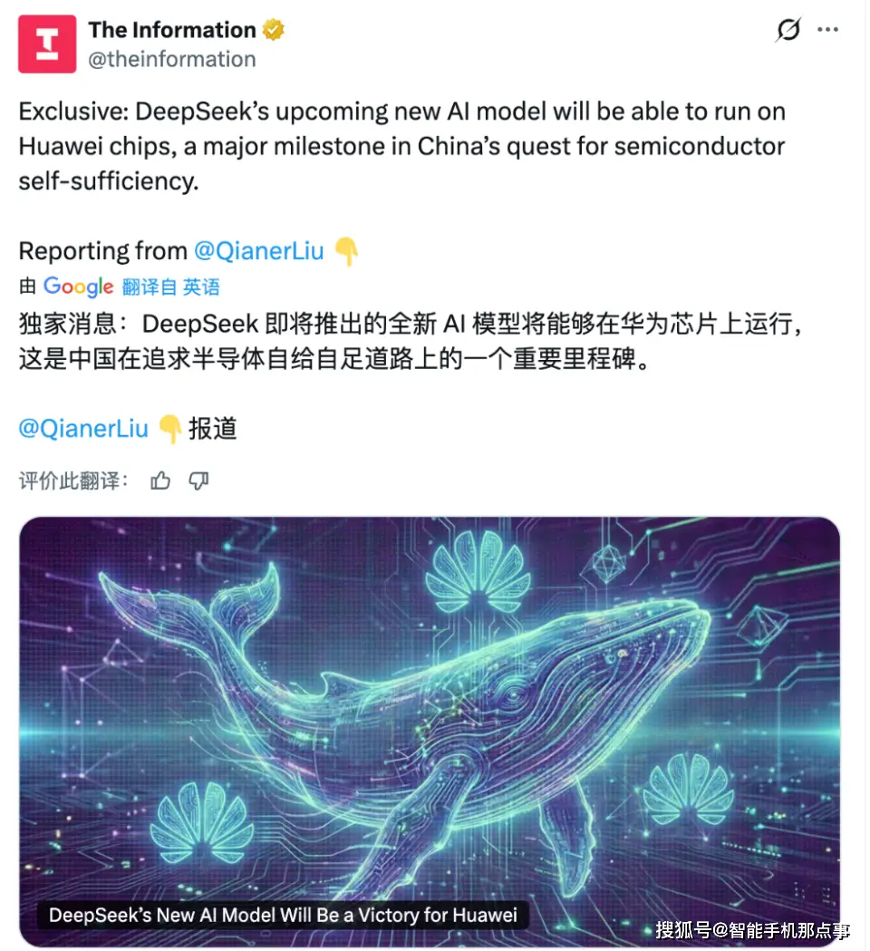 据《The Information》等多家外媒报道,DeepSeek新一代大语言模型V4,已基于包括华为在内的最新国产AI芯片完成深度优化。