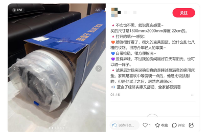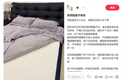 2.小红书:对蓝盒子床垫,尤其是Z1与Z1小石头,好评如潮,顾客试睡后认为Z1床垫支撑性强,不会塌陷,且面料透气,体验舒适;Z1小石头相较于Z1睡感会偏硬一点,对于脊椎不好的人群更加适配。