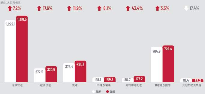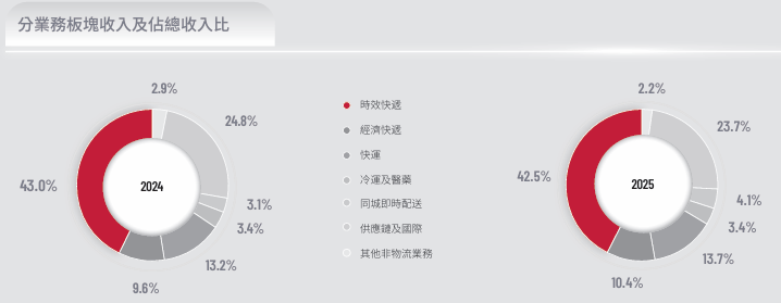 财报显示,2025年时效快递业务实现收入1310.5亿元,同比增长7.2%,增速高于GDP增速,在国内市场保持了绝对领先地位。