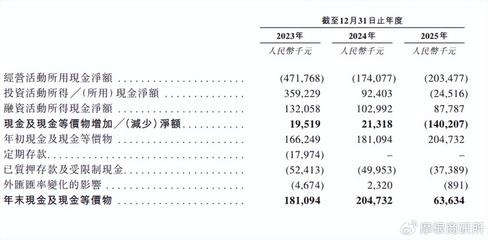 更为紧要的是,截至2025年底现金及现金等价物仅约6363万元。