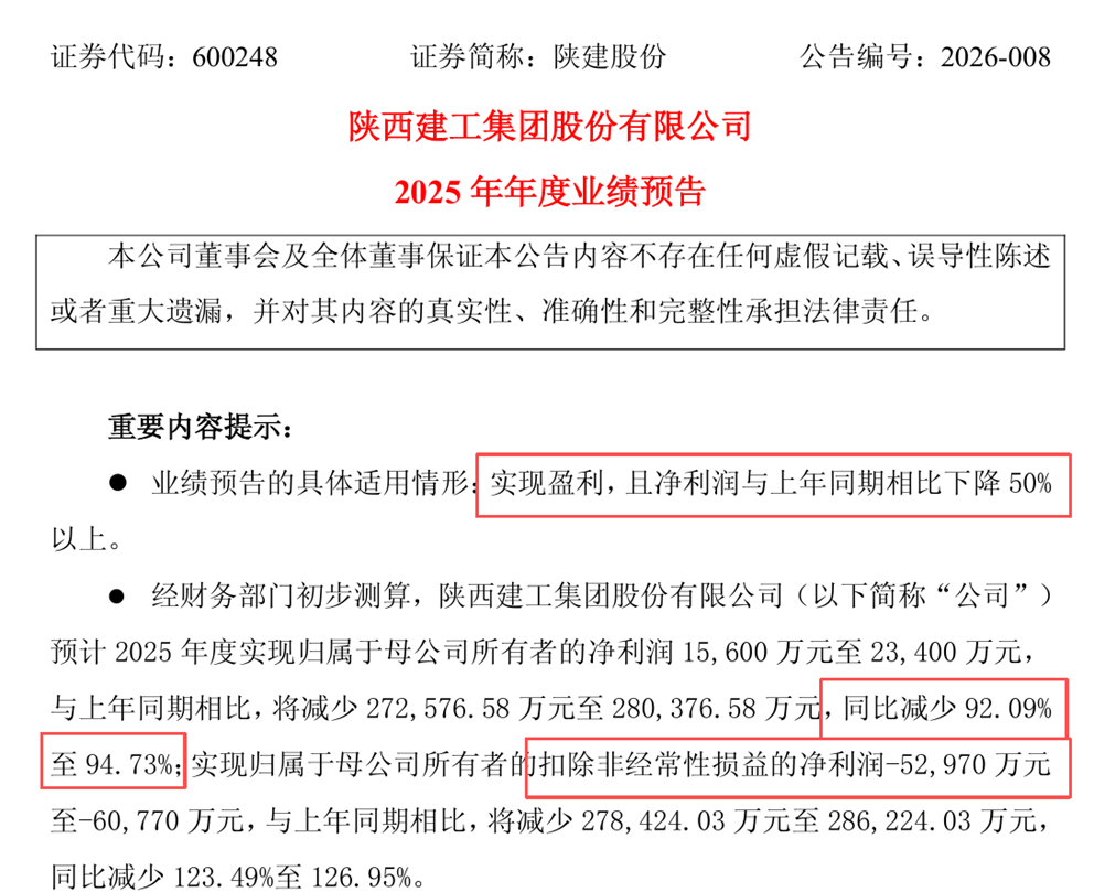 陕西建工的情况则更为直观,陕西建工预计2025年归母净利润1.56亿-2.34亿元,同比减少90%以上;