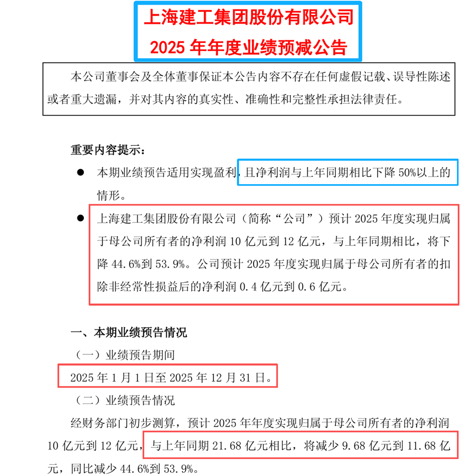 近期,上海建工、陕西建工等顶级建工集团发布了2025年度业绩公告;