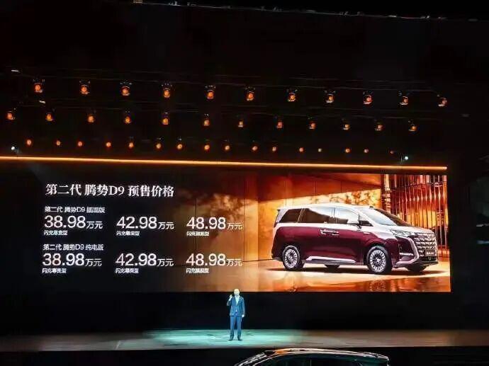 3 月方程豹品牌销量为 25926 辆,在售车型包括豹 5、豹 8、钛 3、钛 7 共计 4 款车型。腾势品牌销量为 7133 辆,在售车型包括腾势 D9、腾势 N9、腾势 N8L、腾势 Z9、腾势 N7 共计 5 款车型。3 月 29 日,第二代腾势 D9 开启预售,新车提供插混版和纯电版共计 6 款车型,预售价为 38.98-48.98 万元。作为第二代车型,新车全系搭载天神之眼 5.0 智能驾驶辅助系统,最大的亮点是全面搭载支持闪充技术的第二代刀片电池,可实现"5 分钟充好,9 分钟充饱",动力上搭载 1.5T 发动机与双电机组成的插电混动系统,发动机最大功率为 115kW,前电机最大功率 200kW,后电机最大功率 45kW,CLTC 纯电续航突破 400km;纯电车型前驱版换搭 340kW 电机,四驱版车型分别配备 340kW、70kW 的前、后电机,纯电车型续航里程为 750km 和 800km。