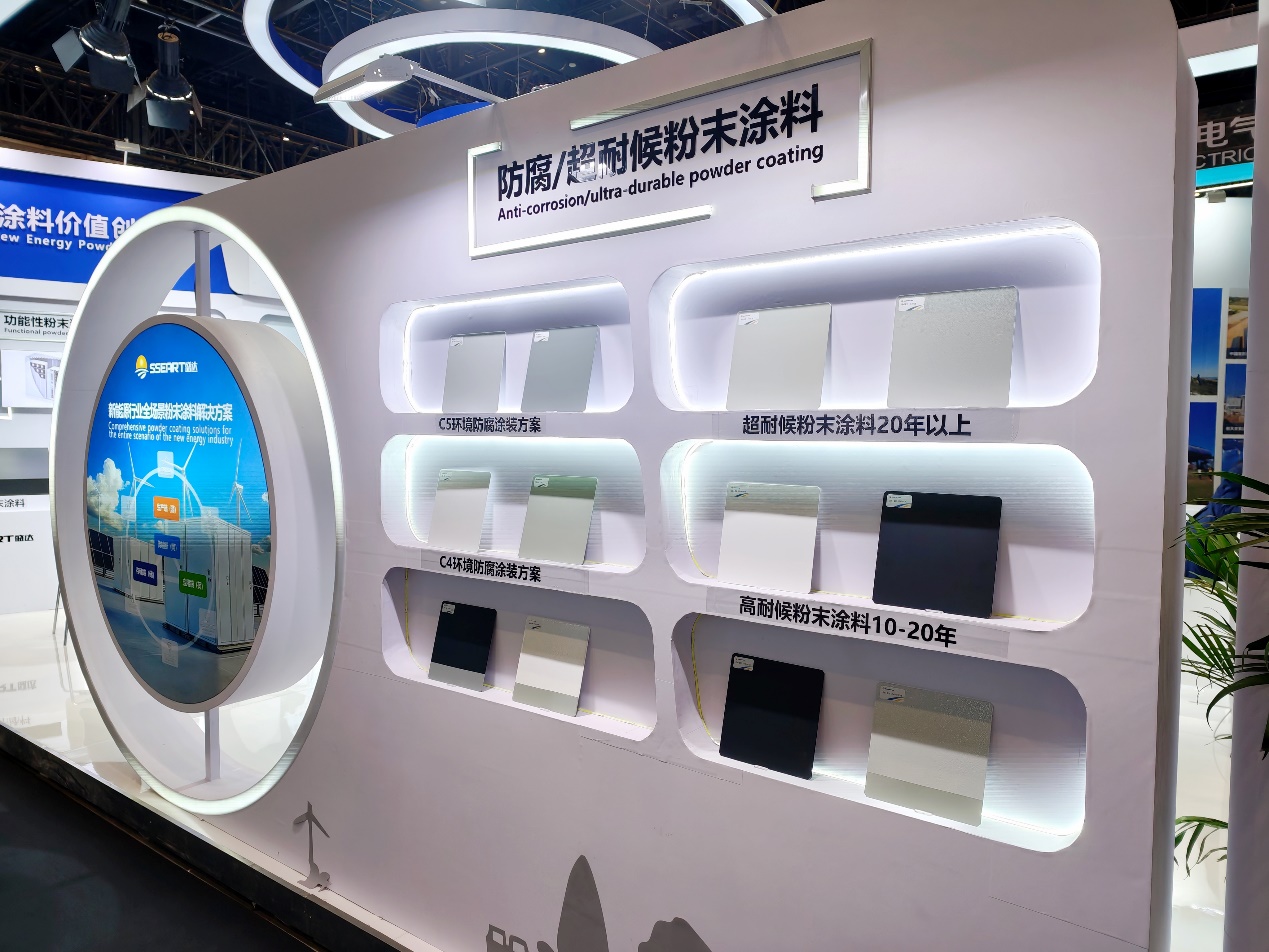 针对新能源装备户外长期运行的防腐需求,盛达推出符合 C3、C4、C5 等级的防腐/超耐候粉末涂料,包含底粉及面粉一体化解决方案,有效抵御盐雾、酸雨、紫外线等侵蚀,延长设备使用寿命,适配海上、高湿、风沙等恶劣环境。