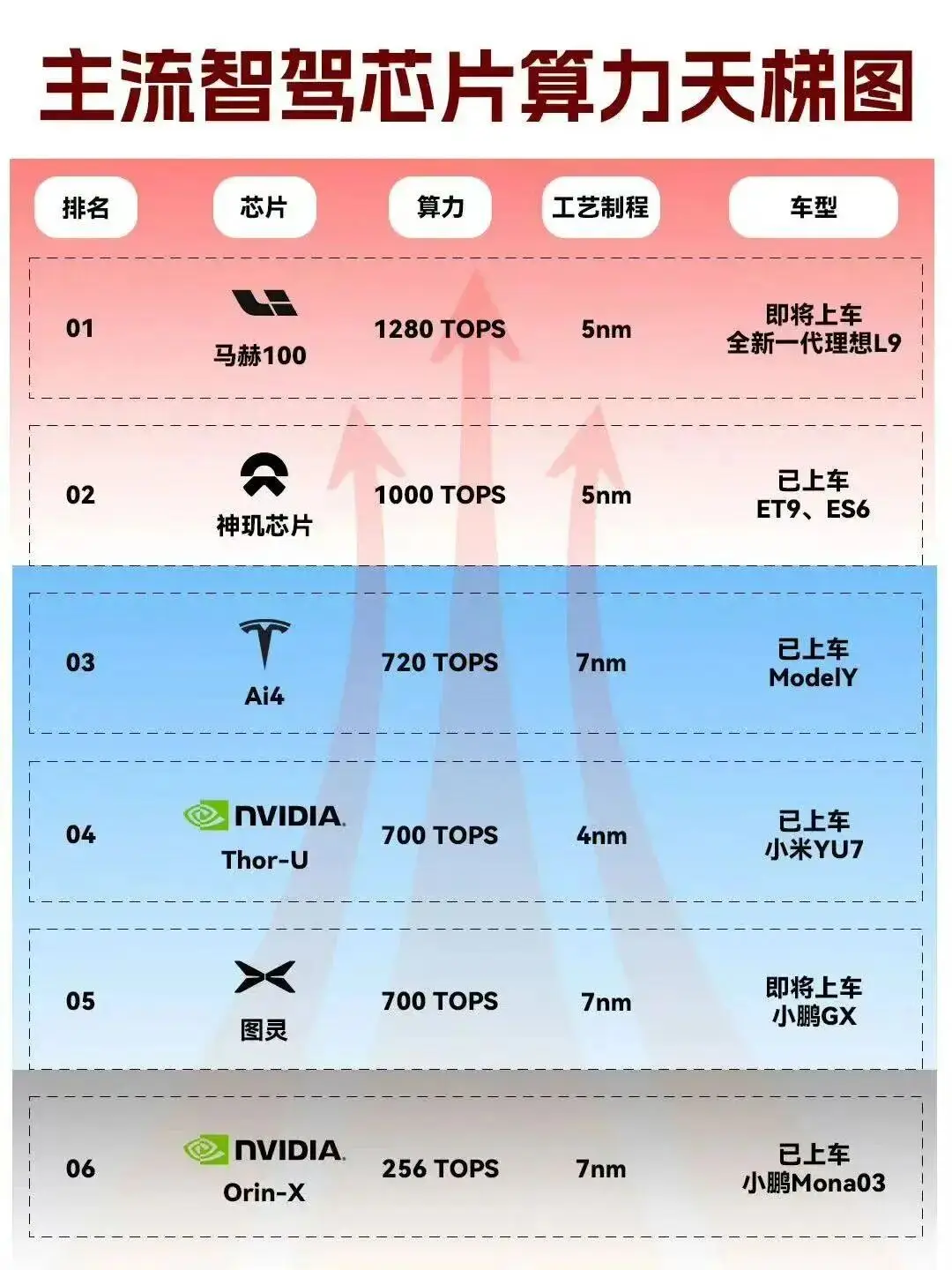 在艰难中转型的理想汽车目光更遥远,要从汽车进化为“具身智能”Ai企业。其中,5纳米车规级智驾芯片“马赫100”被寄以厚望,单颗有效算力1280 TOPS,双芯协同下整体算力达到2560 TOPS,有效算力是英伟达Thor-U芯片的三倍。搭载马赫100芯片的全新旗舰车型理想L9将在今年二季度上市。