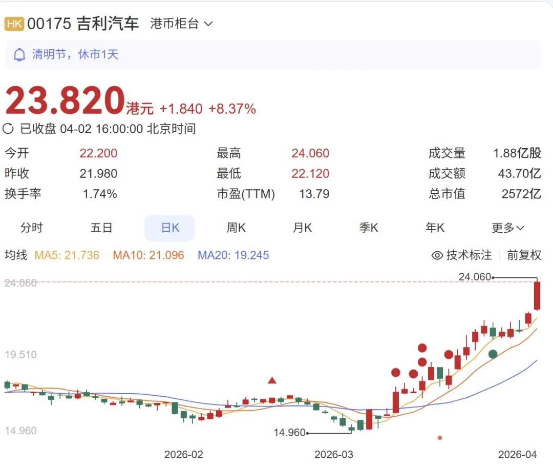 市场对它们在电池的投入给予回报,比亚迪的股价也从3月初开始大涨了30%,3月销量重新站上30万辆大关;吉利和奇瑞的股价也大幅飙升。