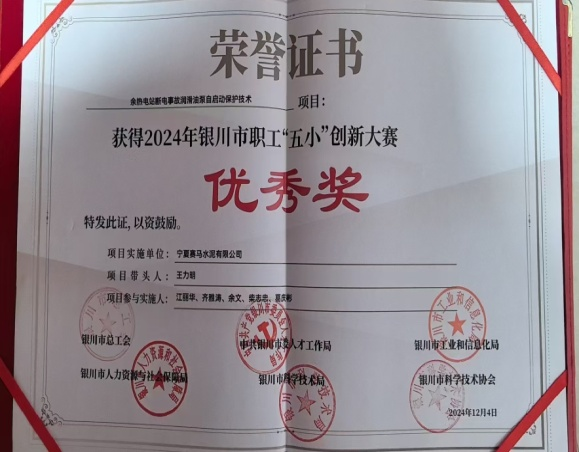 勇于攻坚、技术创新,是推动公司持续发展的关键。他聚焦水泥生产电气系统痛点,主动探索先进技术与实际生产的融合,在日常工作中不断探索新技术、新方法的应用,致力于提高电气系统的自动化水平和能效管理。他先后设计完成的生料磨板喂自动跟踪控制系统、4#生料磨分析仪一拖二喂料控制系统入选了中国建材集团有限公司三精优秀案例;2024年,余热电站两站保安电源自备投项目获得中国建材集团有限公司技术革新二等奖,并先后获得获得区、市两级职工“五小”创新大赛优秀奖,同时获得了两项实用新型专利。自动化项目的应用,极大地提高了公司的自动化程度,保障了设备的运转率。