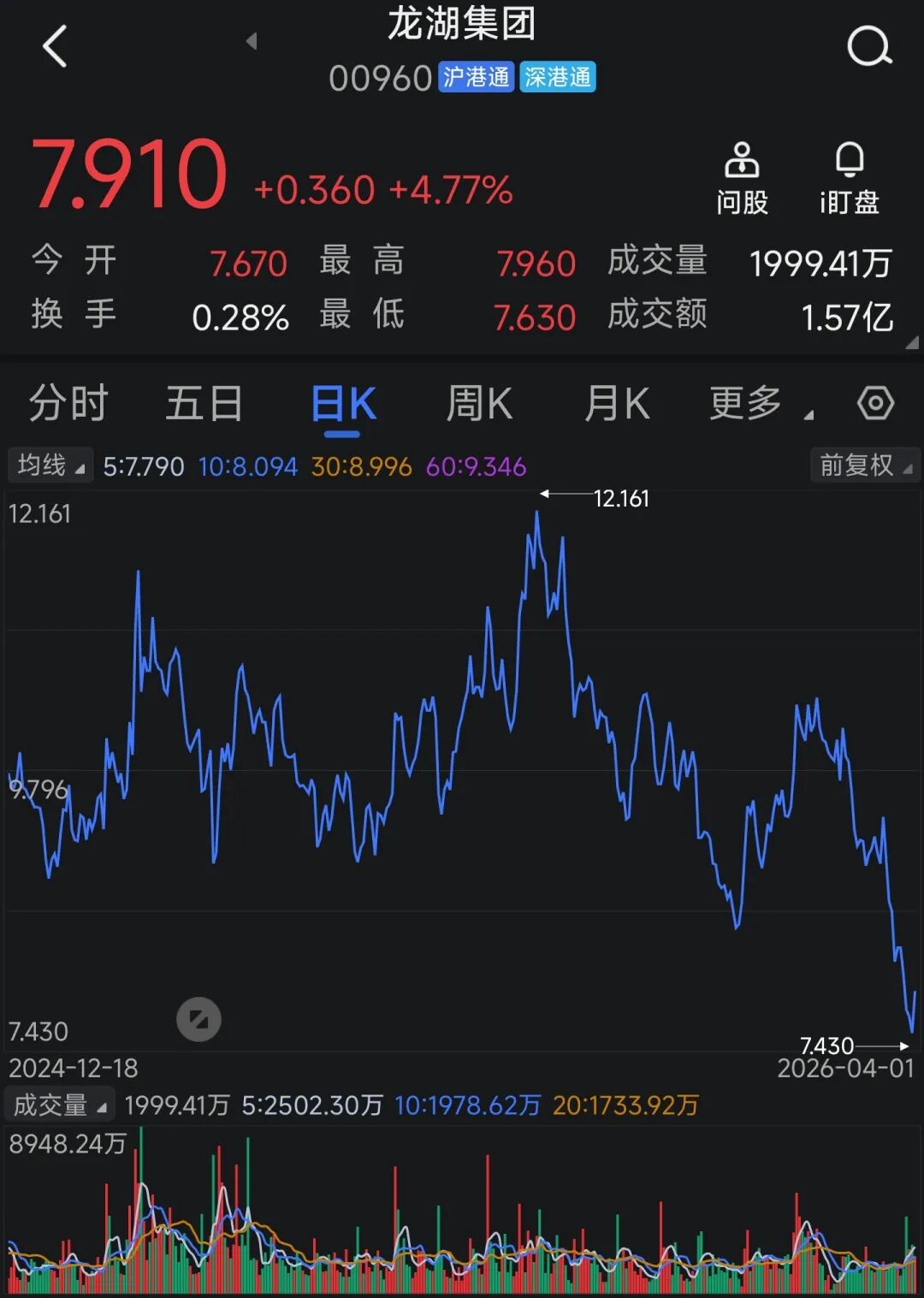 陈序平上任的当天,龙湖股价暴跌44%,市值蒸发200多亿。空头们磨刀霍霍,到处都在传“龙湖要暴雷了”。
