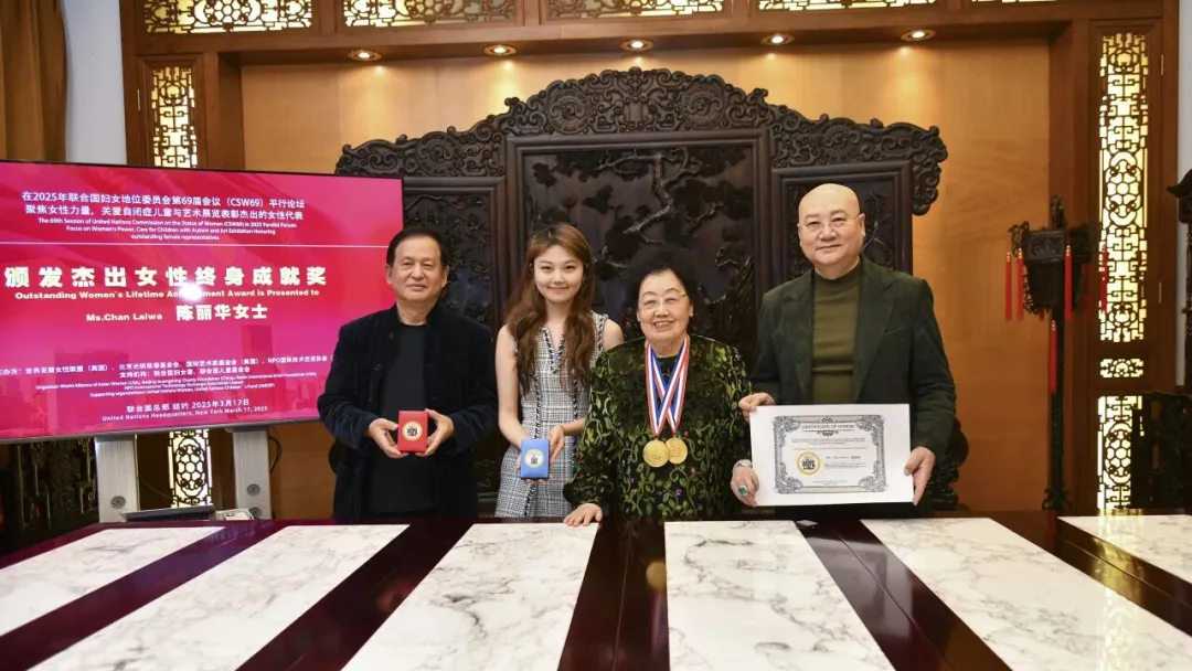 这让她在84岁高龄时,得以前往联合国总部宴会大厅,领取“杰出女性终身成就奖”。同一批获奖的,还有诺贝尔医学奖获得者屠呦呦。