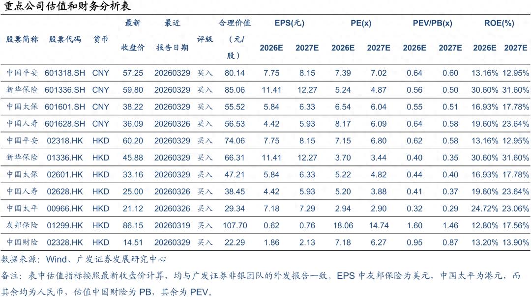 风险提示:个股建议关注:中国太保(A/H)、中国人寿(A/H)、中国平安(A/H)、中国太平(H)、新华保险(A/H)、中国人保(A)/中国人民保险集团(H)、中国财险(H)、友邦保险(H)。