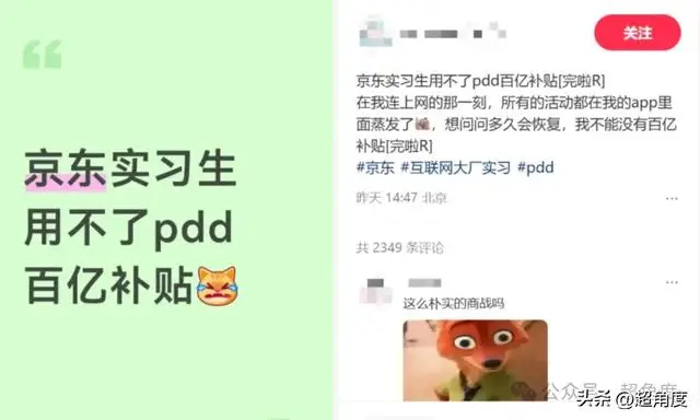 近日,有自称某电商实习生在社交网络平台发文称,被限制使用另一家电商的百亿补贴。
