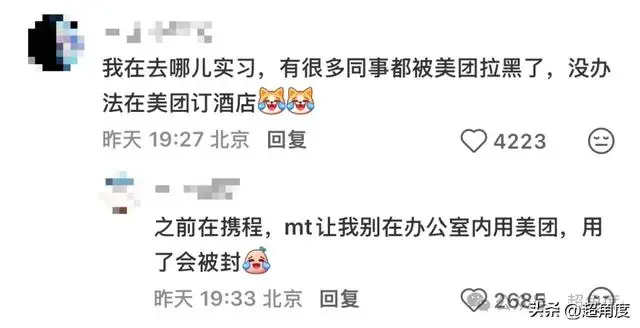 有网友在去哪儿实习,很多同事被美团拉黑了,没法订酒店。