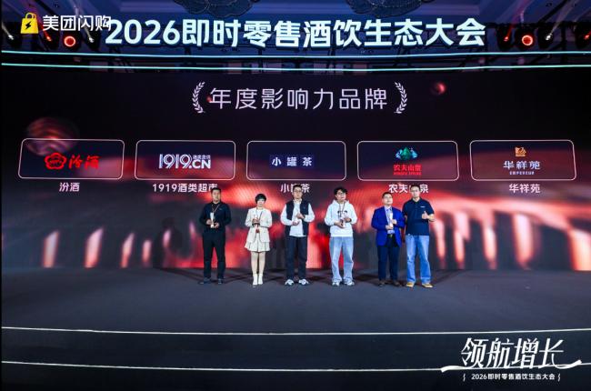 近日,中国酒类流通协会发布的《2025酒类连锁即时零售发展报告》,将壹玖壹玖(1919)的创新实践收录为经典案例。此外,在2026年3月的美团即时零售酒饮生态大会上,1919与汾酒、农夫山泉等品牌一同获得美团闪购“年度影响力品牌”称号。