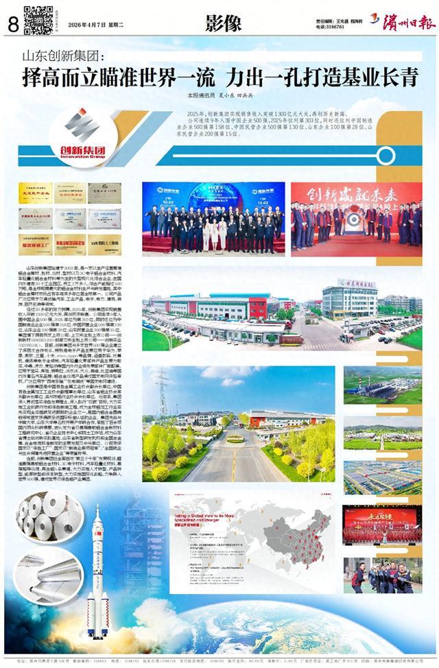 经过20多年的努力拼搏,2025年,创新集团实现销售收入突破1300亿元大关,再创历史新高。公司连续9年入围中国企业500强,2025年位列第303位,同时还位列中国制造业企业500强第158位、中国民营企业500强第130位、山东企业100强第28位、山东民营企业200强第15位。集团旗下拥有两家上市公司:上交所主板上市公司——创新新材(600361.SH)和港交所主板上市公司——创新实业(02788.HK)。目前,创新集团与多家世界500强企业建立了深层次合作关系,特别是电子产品主要应用于华为、苹果、微软、三星、小米、vivo、oppo等品牌,涵盖数码、计算机、通讯等电子全领域;汽车轻量化零部件产品主要为敏实、中鼎、凌云、麦格纳等国内外行业领先零部件厂商配套,应用于宝马、奔驰、特斯拉、沃尔沃、大众、奥迪、比亚迪等国内外著名汽车品牌;铝合金线缆产品通过国家电网资格审核,广泛应用于“西电东输”“北电南送”等国家电网建设。