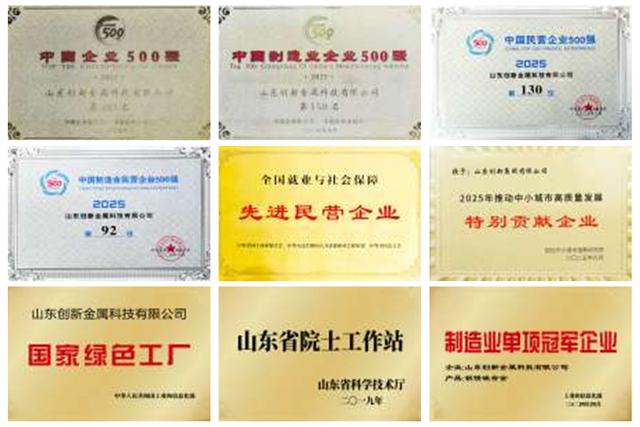 公司连续9年入围中国企业500强,2025年位列第303位,同时还位列中国制造业企业500强第158位、中国民营企业500强第130位、山东企业100强第28位、山东民营企业200强第15位。