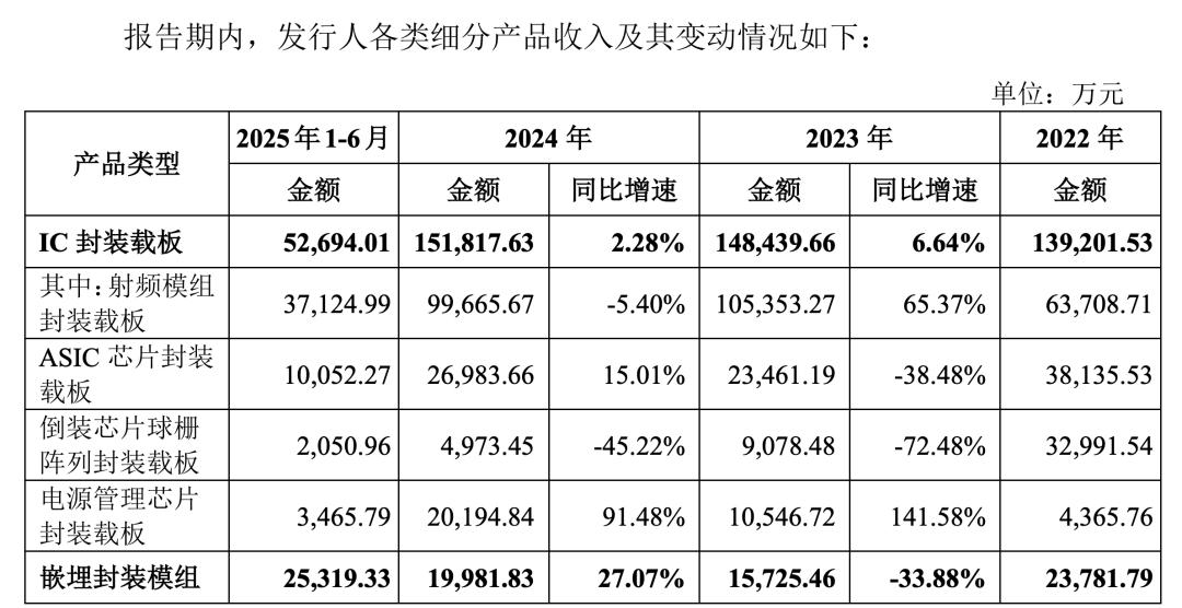 2025年1—6月,电源管理芯片封装载板的营业收入降低,主要是受到下游应用市场竞争及技术路径变动导致部分客户需求减少的影响,产品技术路径变动表现为电源管理芯片封装载板的部分市场需求向嵌埋封装模组产品转移。