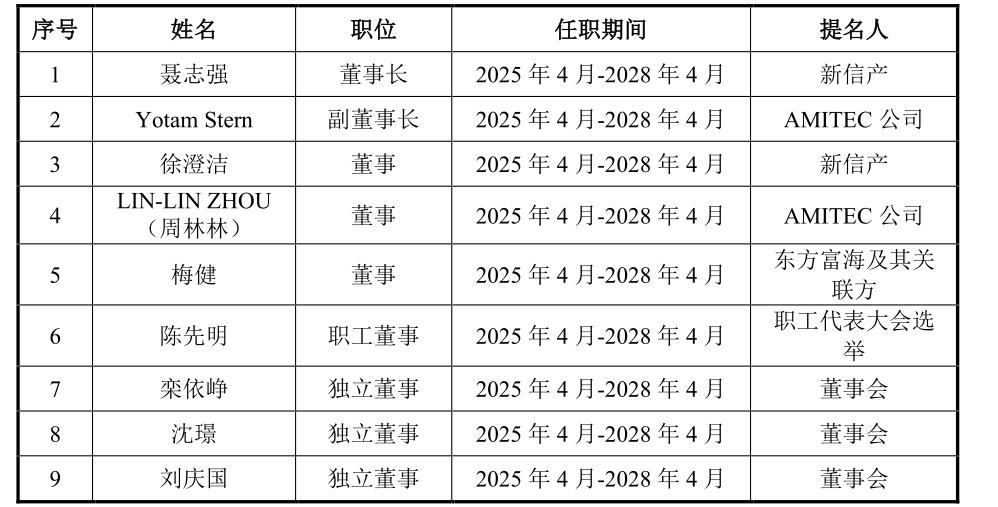 截至招股书签署日,越亚半导体共有董事会共由9名董事组成,其中董事长聂志强、董事徐澄洁是由新信产提名,副董事长YotamStern、董事LIN-LINZHOU(周林林)是由AMITEC公司提名。