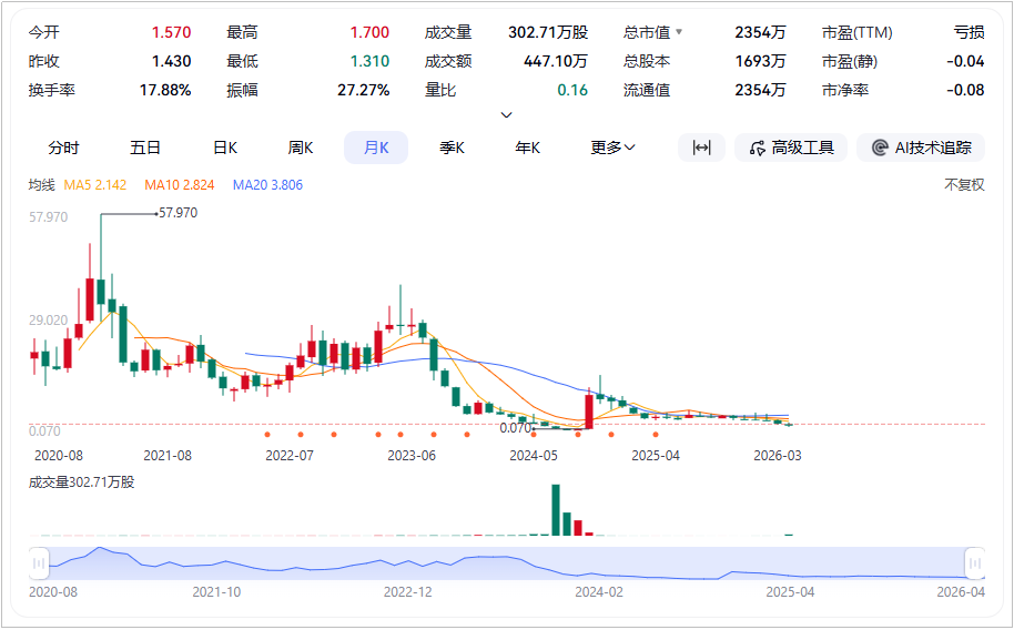 Maxeon股价走势图(截至美东时间4月8日,最新股价1.390美元,总市值2354万美元)