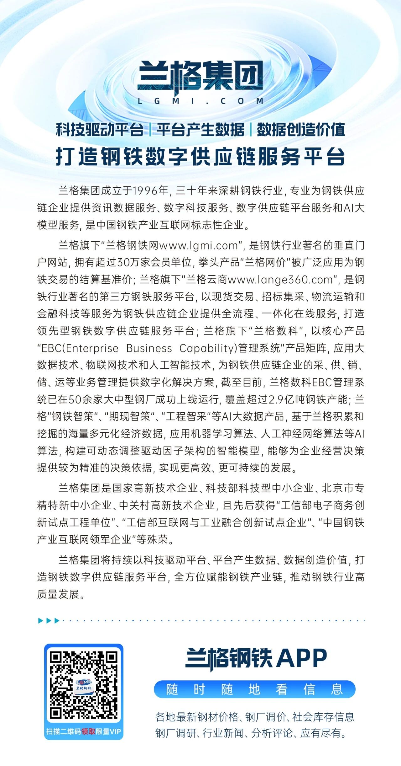 两江潮涌,奋进当时。本次高峰论坛的成功举办,为重庆钢铁产业链上下游企业搭建了高效对接、协同破局的坚实平台,凝聚了“向新而行”的强烈共识。站在三十周年的新起点,兰格集团将持续发挥品牌、数据与平台优势,深度融入成渝双城经济圈建设,精准服务终端用钢领域,以数字化、智能化、绿色化赋能产业链升级。兰格集团将与重庆钢铁同仁一道,于变局中开新局,在攻坚中育新机,共同书写西南钢铁产业高质量发展的崭新篇章!