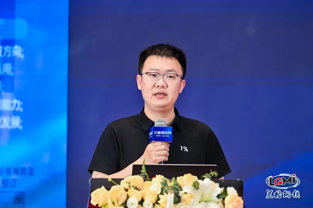 找钢网集团董事总经理郎春鹏在致辞中系统阐述了找钢网的商业模式与经营理念,深入剖析了钢贸行业六大发展趋势。他重点展示了找钢网在AI转型方面的实践成果,涵盖预售预购、交易安全、库存管理等多个应用场景,生动呈现了技术如何赋能传统钢贸业务。这些探索不仅为自身发展注入新动能,也为行业数字化、智能化升级提供了参考路径与方向。