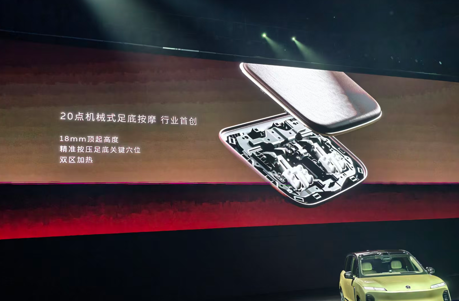 技术功能方面,该车行业首创20点机械式足底按摩,采用18mm大冲程机械球头,可实现精准按压且力度可调;同时全球首发阵列式LC智能隐私调光车窗及车载视频会议系统。