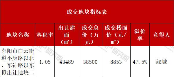 绿城溢价47.5%竞得东阳城区低密宅地