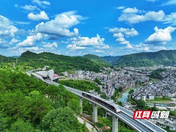 ▲湖南轨道集团在凤凰古镇打造的磁浮观光列车。