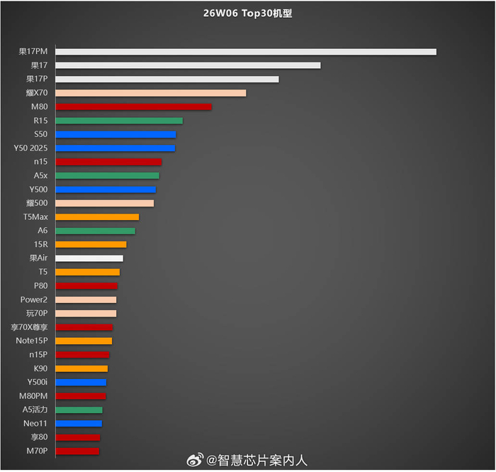 具体到机型里,苹果三款依然一骑绝尘,同时iPhone Air也上榜了,表明降价到5000元左右确实效果不俗。而实际上,iPhone Air的价格还能更低。