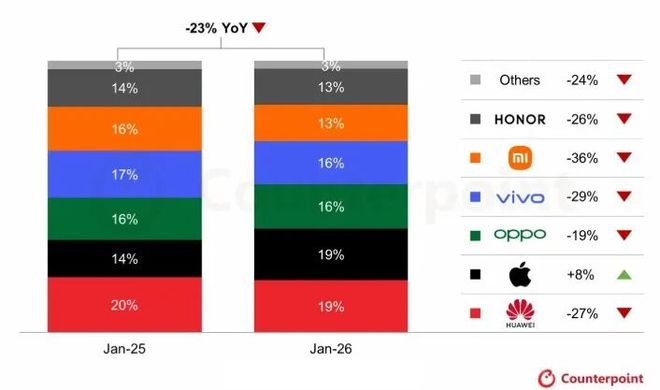 有第三方机构统计,华为1月市场份额达到18.6%,在新年第一月领跑中国市场。很多人第一反应是“回暖了”,但机哥更关心的是,这波增长靠什么撑起来?